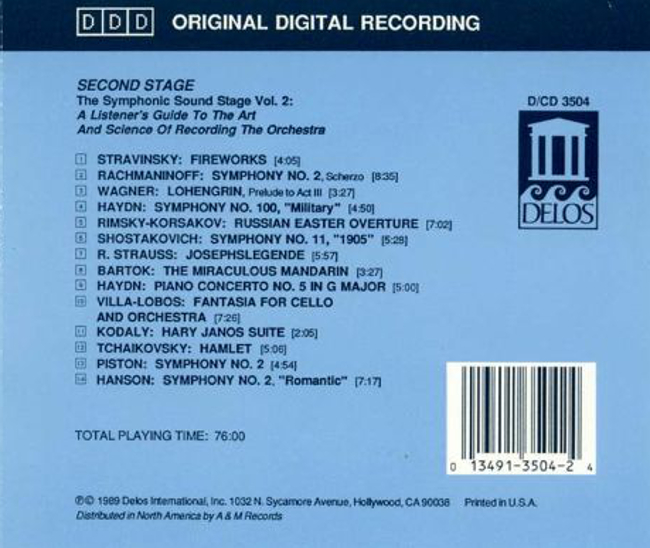 01. Schwarz, Gerard "Feuerwerk (Feu d'artifice) op. 4 (Fantasie für Orchester)" Sinfonie Nr. 2 e-moll op. 27 (Auszug) 02. DePreist, James "Scherzo" Lohengrin (Oper in 3 Akten) (Auszug) 03. Schwarz, Gerard "Prelude zum 3. Akt" Sinfonie Nr. 100 G-Dur Hob. I:100 (Londoner Sinfonie) "Milit?r-Sinfonie" (Auszug) 04. Schwarz, Gerard "Finale: Presto" Russische Ostern op. 36 (Ouvertüre La Grande Paque Russ) (Auszug) 05. Schwarz, Gerard "(keine Angaben)" Sinfonie Nr. 11 g-moll op. 103 "Das Jahr 1905" 06. DePreist, James "(keine Angaben)" Josephslegende op. 63 (Ballettpantomime) (Auszug) 07. Schwarz, Gerard "(keine Angaben)" Der wunderbare Mandarin op. 19 Sz 73 (Suite für Orchester) (Auszug) 08. Schwarz, Gerard "(keine Angaben)" Konzert für Klavier und Streicher Nr. 5 C-Dur Hob. XVIII:5 (Auszug) 09. Rosenberger, Carol "Adagio" Fantasie für Violoncello und Orchester 10. Starker, Janos "Largo" Háry János op. 15 (Singspiel): Suite (Auszug) 11. Schwarz, Gerard "The Viennese musical clock" Hamlet op. 67a (Schauspielmusik) (Auszug) 12. DePreist, James "(keine Angaben)" Sinfonie Nr. 2 (Auszug) 13. Schwarz, Gerard "Moderato" Sinfonie Nr. 2 e-moll op. 30 "Romantische" (Auszug) 14. Schwarz, Gerard "Finale: Allegro con brio"