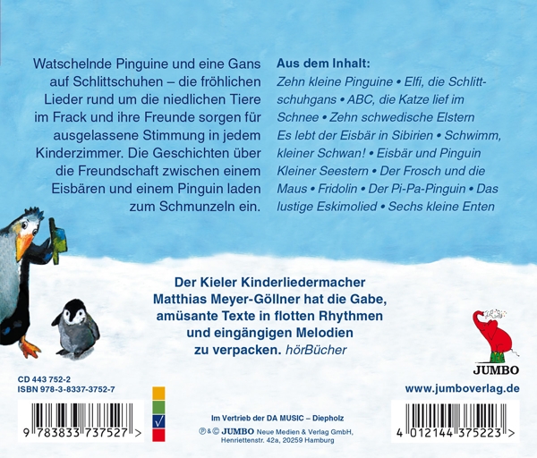 01. Reuters, Inga "Ansage" 02. Cat Chor Feat. Almut, Carla, L "Zehn Kleine Pinguine" 03. Meyer-Goellner, Matthias "Elfi, Die Schlittschuhgans" 04. Goeschl, Bettina "Abc, Die Katze Lief Im Schnee" 05. Various "Drei Eskimos" 06. Nagel, Rolf "Eisbaer Und Pinguin (Teil 1)" 07. Goeschl, Bettina "Sechs Kleine Enten" 08. Cat Chor Feat. Almut, Carla, L "Fridolin" 09. Goeschl, Bettina "Klitzekleine Fledermaeuse" 10. Die Fabelhaften 3 "Es Lebt Der Eisbaer In Sibirien" 11. Nagel, Rolf "Eisbaer Und Pinguin (Teil 2)" 12. Goeschl, Bettina "Du Und Der Wal" 13. Goeschl, Bettina "Kleiner Seestern" 14. Meyer-Goellner, Matthias "Zehn Schwedische Elstern" 15. Cat Chor Feat. Almut, Carla, L "Das Lustige Eskimolied" 16. Kind "Kleiner Igel Komm Heraus" 17. Nagel, Rolf "Eisbaer Und Pinguin (Teil 3)" 18. Goeschl, Bettina "Der Frosch Und Die Maus" 19. Hirler, Sabine "Der Pi-Pa-Pinguin" 20. Goeschl, Bettina "Schwimm, Kleiner Schwan!" 21. Kind "Kleines Baerenlied"